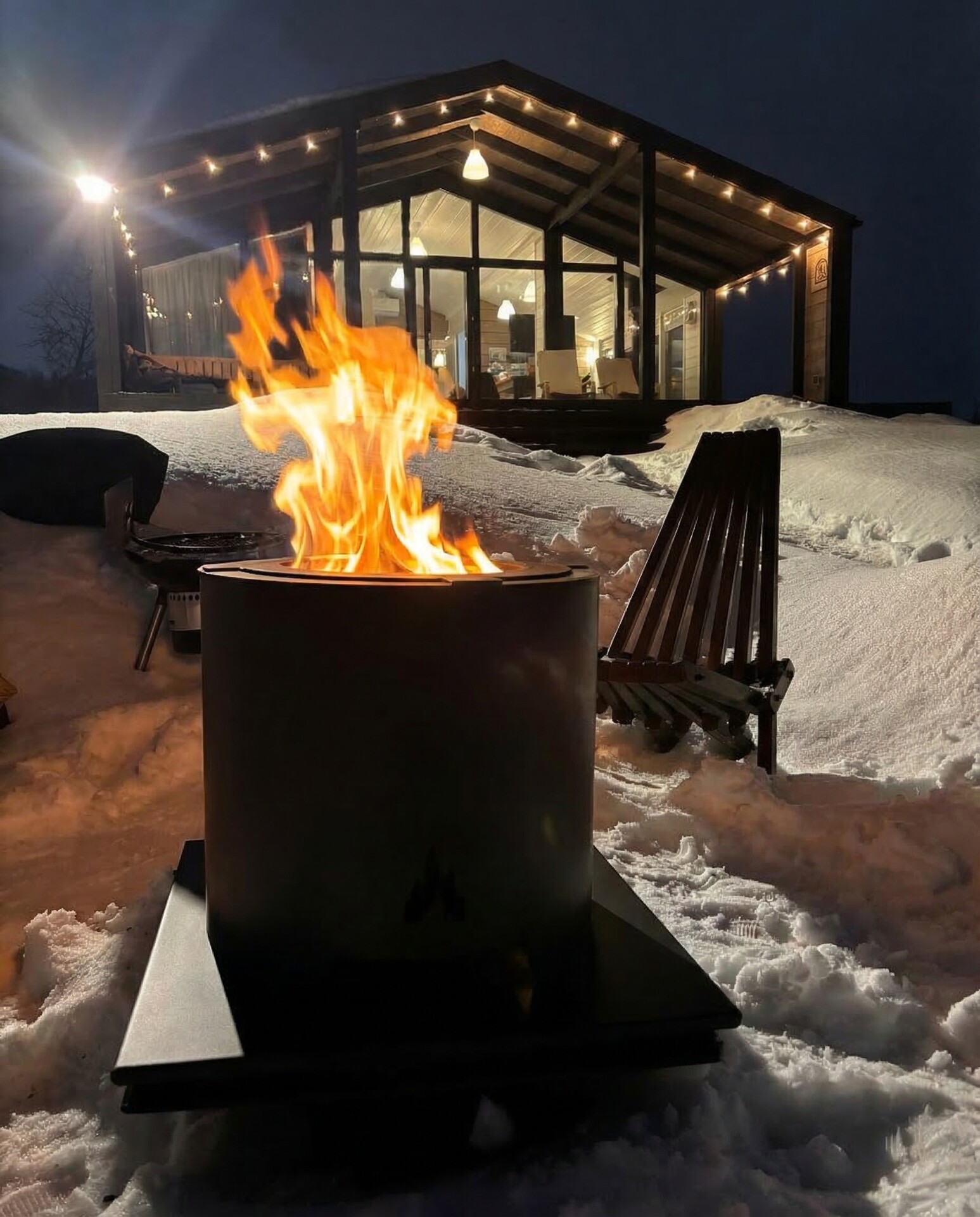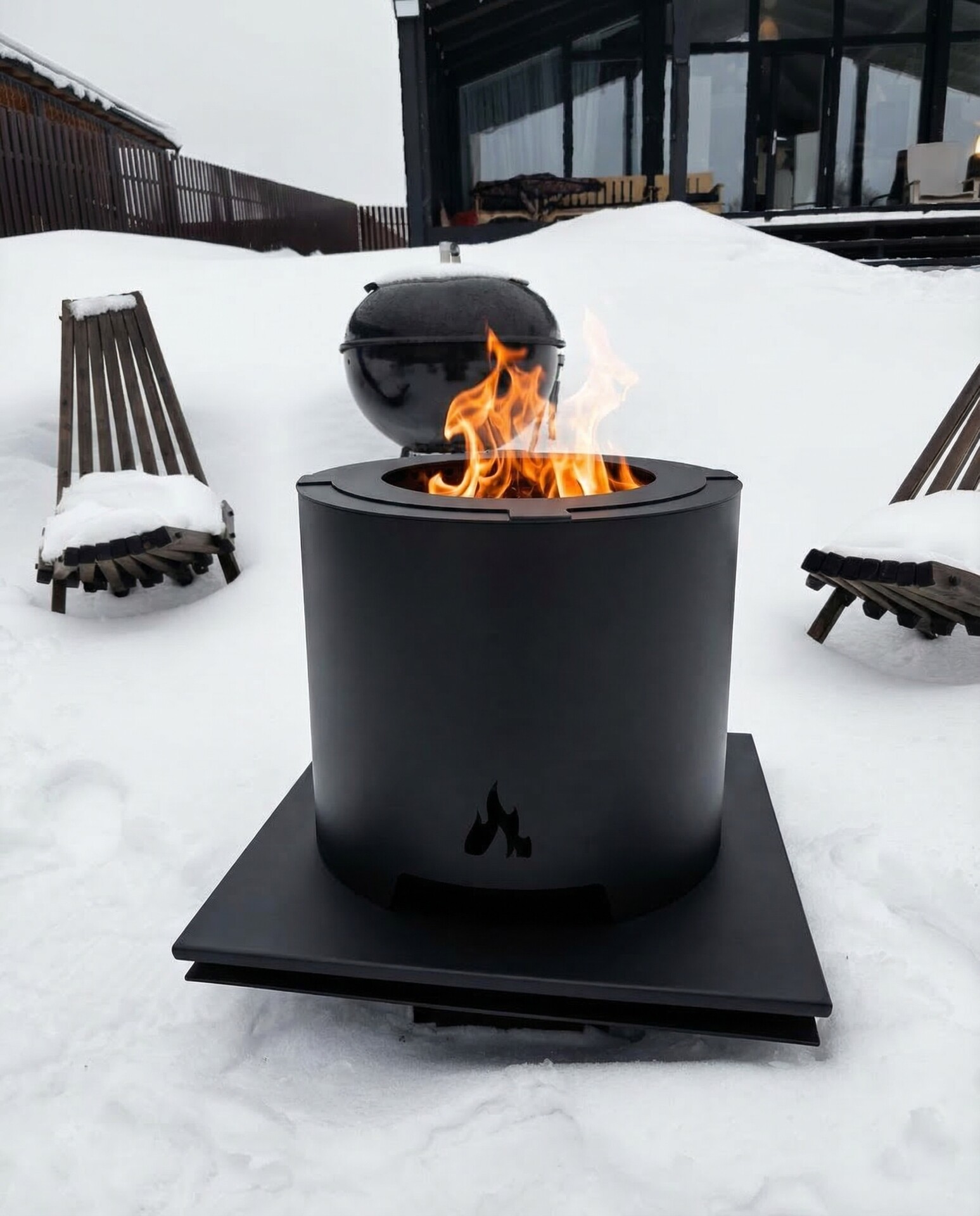Мы разработали конструкцию, в которой дым превращается в огонь, чтобы вы могли комфортно отдыхать у костра в любой обстановке: у загородного дома, на террасе, в открытой беседке, на природе или в саду.